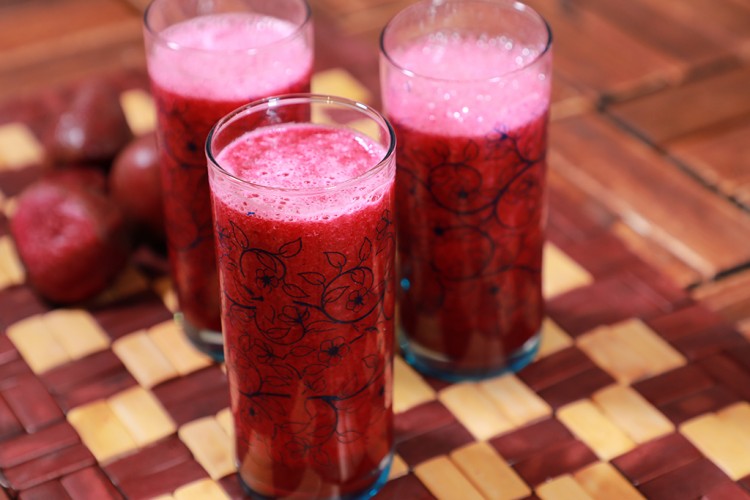 3. صبي عصير الشمندر بأكواب التقديم، وقدميه فوراً.