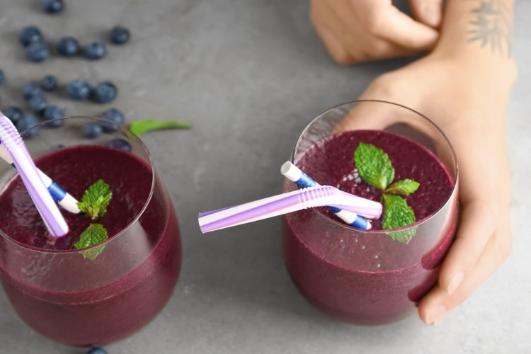 - ضعي الشمندر والبلوبيري والثلج وحليب اللوز والعسل في الخلاط.