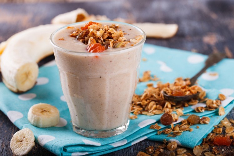1. في الخلاط الكهربائي ضعي الحليب، الفواكة المجففة (مع الاحتفاظ ببعضهم للتزيين)، المكسرات، وقومي بخلطهم معاً، ثم أضيفي العسل وأعيدي الخلط.