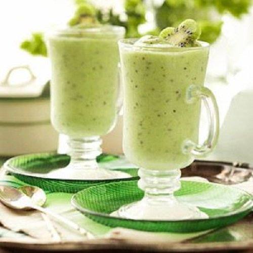 – يقشر الكيوي ويقطع مكعبات ثم يضاف على الموز والحليب .