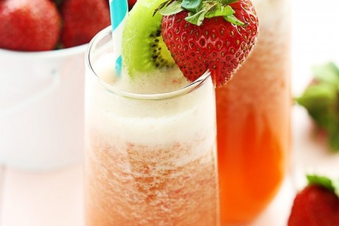 - وزعي الخليط على الأكواب وفوق السطح مكعبات الثلج المجروش، وزيني بحبة فراولة طازجة وورقة نعناع طازج.