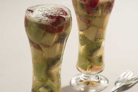 - املئي الكؤوس بالعصير الفوار. قدميه مباشرة.