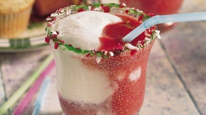- فى الخلاط نضرب الفراولة والزبادى والعسل واللبن والكريمة لبانى والآيس كريم وثلج ونضربهم مع بعض .