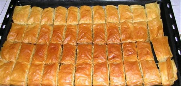 - قطعي البقلاوة إلى قطع صغيرة الحجم، ثمّ ضعيها في الفرن المسخّن سابقاً لمدة خمس وعشرين دقيقة حتى تحمرّ جيداً.