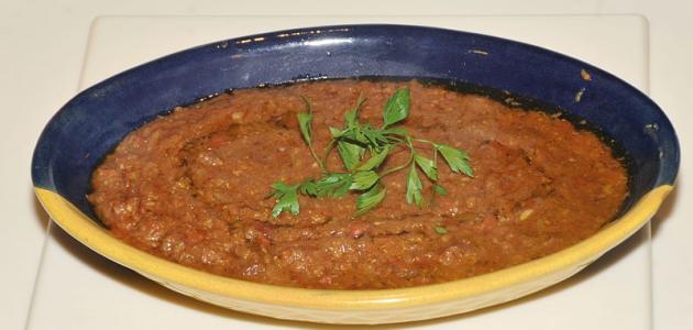 - نضع في طبق جانبي، زيت زيتون، عصير ليمون، ملح، وكمون، ونضيف إليه الطماطم المفرومة ناعماً، والبقدونس.