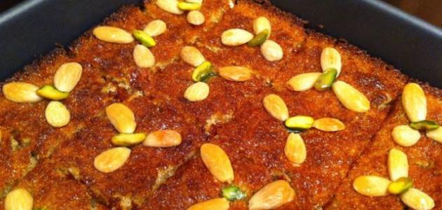 - ندخل الصينيّة إلى الفرن ونخبزها لمدة ثلاثين دقيقة، أو إلى أن تنضج قطع البسبوسة.