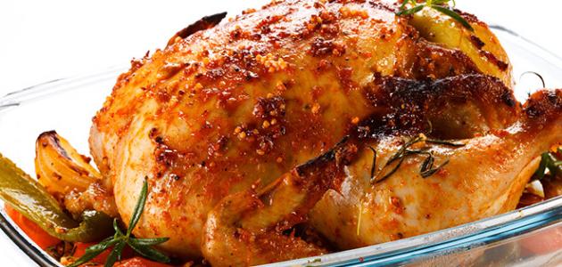 - نقوم بتسخين الفرن ونضع فيها الدجاجة لمدة ربع إلى ثلث ساعة حتى تحمر ونقوم بتقديمها.