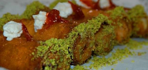 - نبدأ بإعداد الحشوة حيث نقوم بإذابة النشا في كوب من الحليب، ثم نغلي بقية الحليب، ونبعده عن النّار، ثم نضيف بعد ذلك إليه خليط الحليب مع النشا بالتدريج، ثم نعيدهُ ونضعه على نارٍ هادئةٍ ليغلي لمدة دقيقة إلى دقيقتين. ثم نضيف القشطة وماء الورد وماء الزهر.