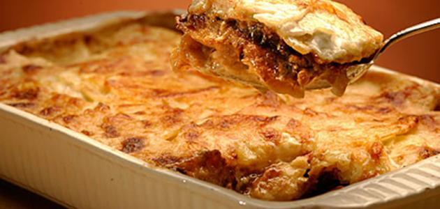 - إدخال الصينية إلى الفرن من الأسفل مدّة عشرين دقيقة، حتّى تجف الطبقة العلوية، ثم وضعها تحت الشواية، حتّى تصبح ذهبية اللون.
