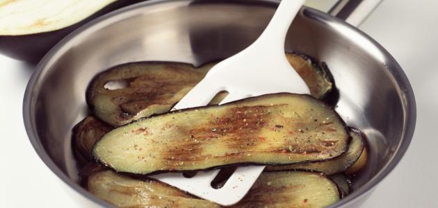 - في وعاء آخر نضع به قليل من زيت ونتركه قليلاً ليسخن ومن ثم نضيف مكعبات الباذنجان لتتقللى ويشقر لونها.