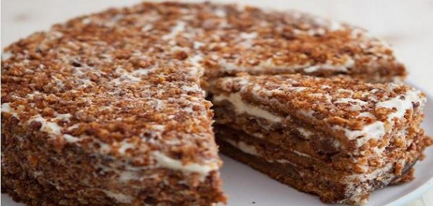 - نخرجه ونتركه جانباً حتّى يبرد، ثمّ نزيّنه بطبقة من الصلصة، وننثر الجوز المجروش، ونضعه في البراد حتّى يبرد قبل أن نقدمه.
