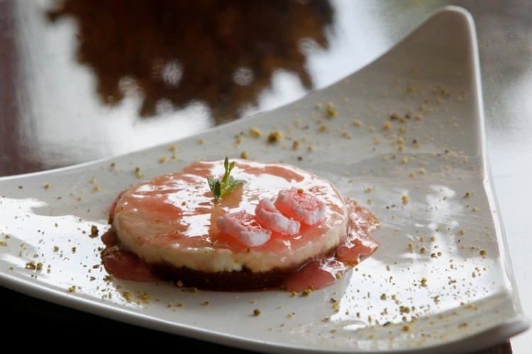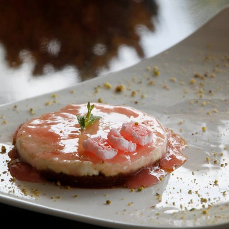 ثم يوضع هذا الطبق في الثلاجة قبل التقديم، ويزيّن براحة الحلقوم والفستق الحلبي المطحون.