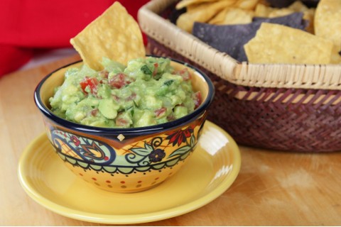 1. نقوم بتقشير الأفوكادو وهي عملية غاية في السهولة. نقوم بشطر حبة الأفوكادو الى نصفين طوليين ونتخلى عن بذرته الكروية، ثم بواسطة ملعقة نقوم بتجريف لب الأفوكادو الأخضر داخل وعاء. نكرر العملية لباقي حبات الأفوكادو.