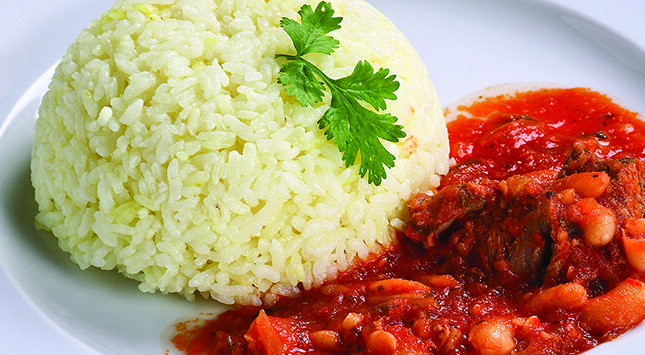 ترفع عن النار، وتقدم للأكل ساخنة، مع الأرزّ المفلفل.