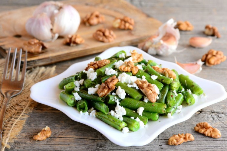فاصوليا خضراء مشوية بالجوز وجبن الفيتا