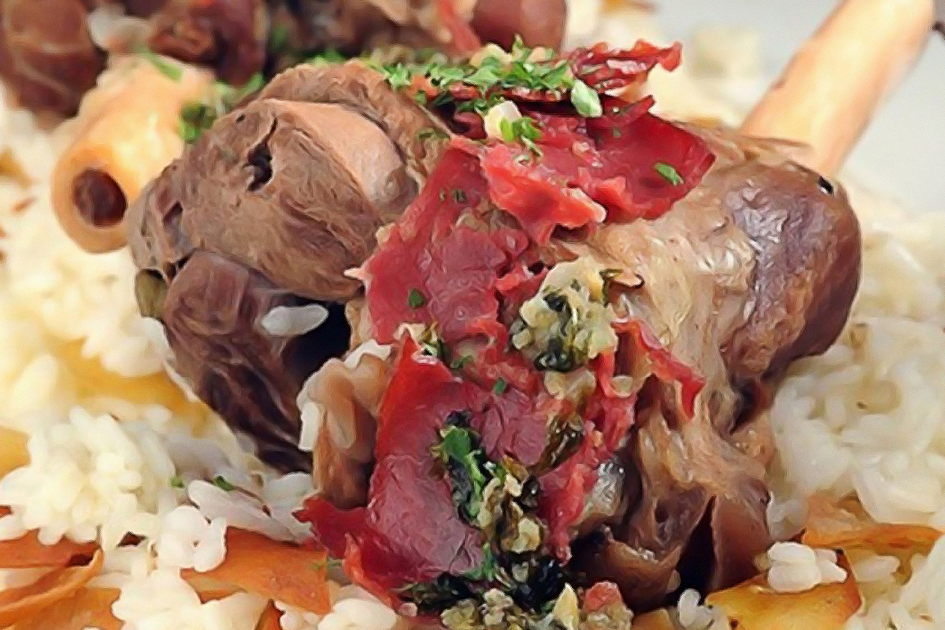 تقشر ألسنة الضأن وتقطع إلى قطع سميكة متوسطة الحجم