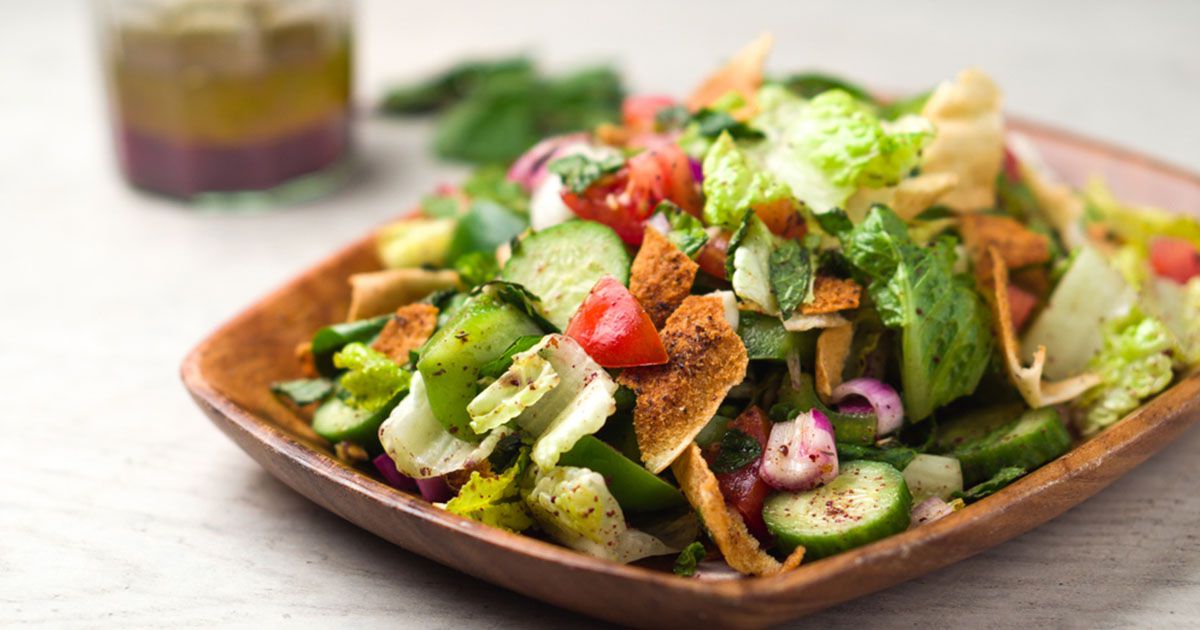 3- زيدي الخبز المحمص وقلّبي المكونات حتى تتداخل. قدًمي الفتوش على سفرتك. ألف صحة!