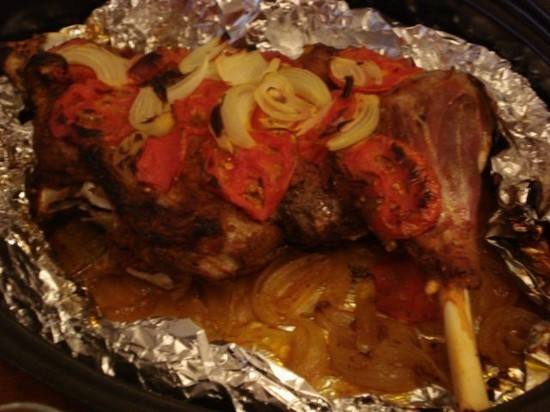 - يوضع الفخذ في طبق التقديم، ويُزين بالصنوبر المحمر .