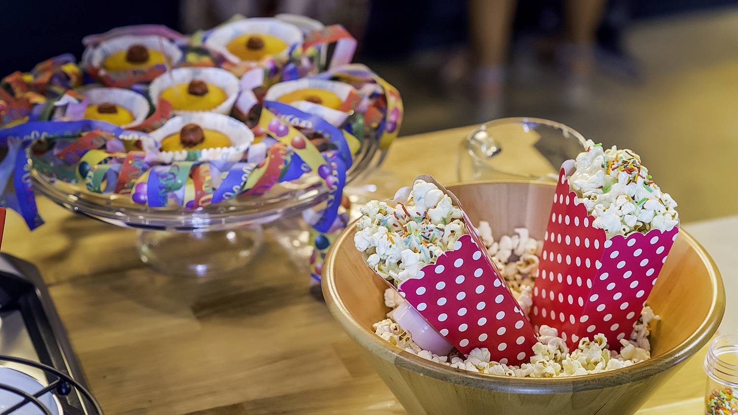 تذاب الشيكولاته البيضاء على حمام بائى ثم ترفع على الفشار المجهز.