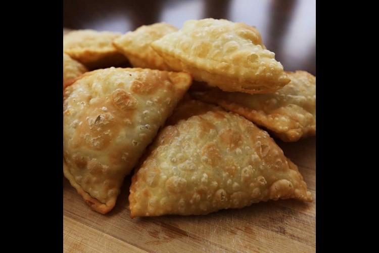 4. تحشى قطع العجين بخليط البطاطا، وتقطع أطراف العجين الزائدة باستخدام القطاعة الخاصة بتشكيل المعجنات.