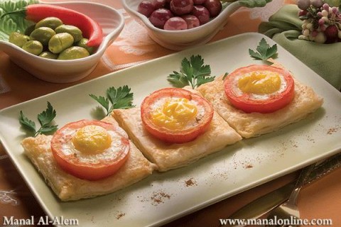 - بحذر شديد، اكسري بيضة في كل نصف طماطم .