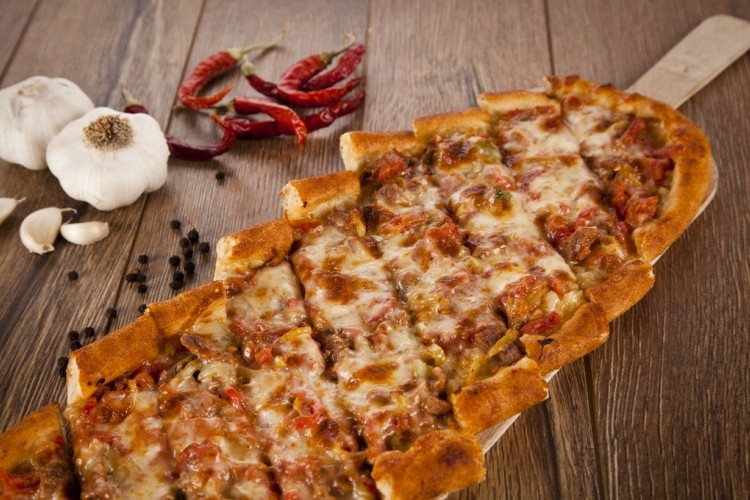 - وزّعي كميات متساوية من الحشوة على وسط كل دائرة من العجين، وأضيفي كميات متساوية من جبن الموزاريلا فوق الحشوة.