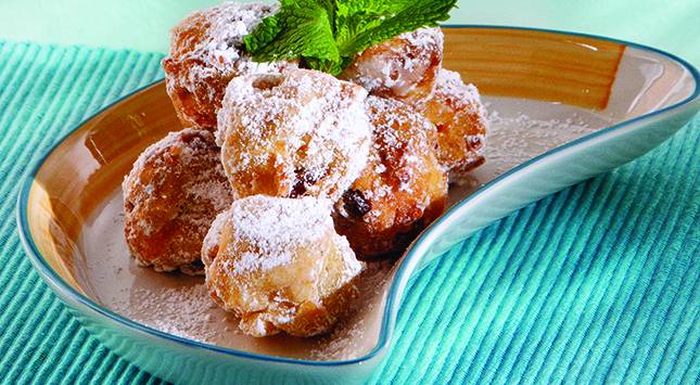 يُحمر العجين في صورة ملاعق كبيرة مستديرة في زيت ساخن على درجة حرارة 180 مئوية حتى يكتسب اللون الذهبي، ثم يُصفى من الزيت على مناشف ورقية.
