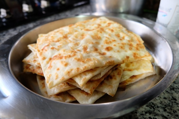 - يضاف الجبن على سطح العجين، ثم يثنى طرف العجين بحيث تكون الجبنة من الداخل.