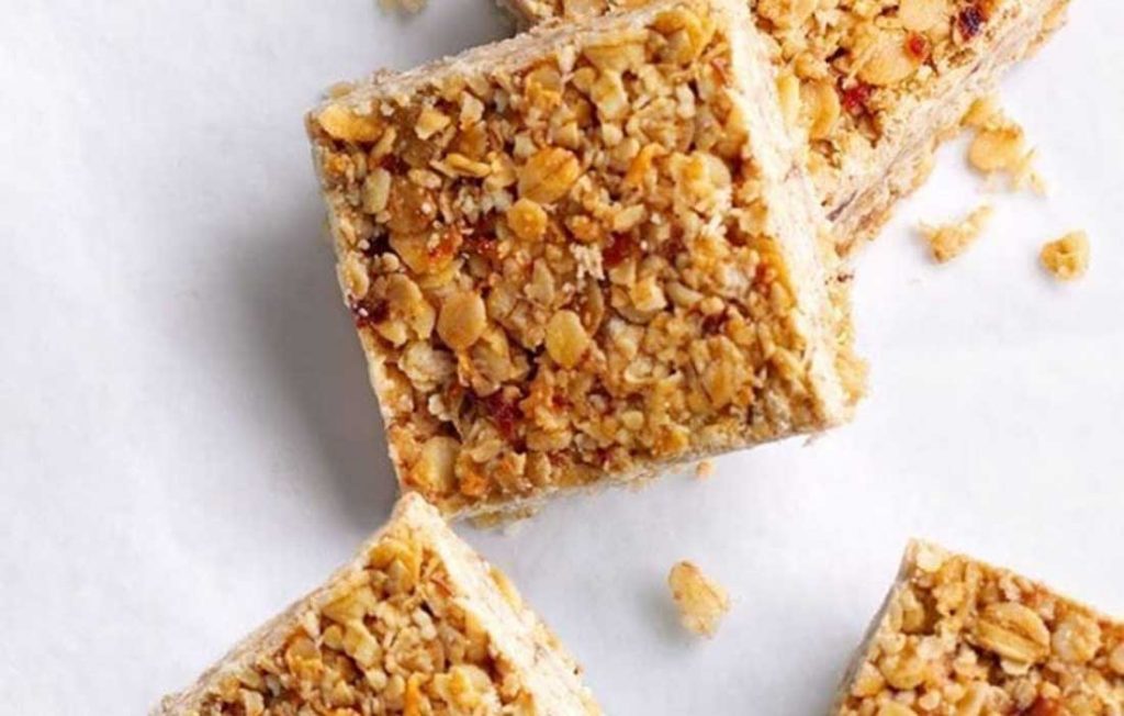 - اضغط الخليط بالتساوي في الصينية المعدة، استخدم ملعقة معدنية مغموسة في الماء لتنعيم السطح. اخبزها لمدة 20-22 دقيقة حتى تصبح ذهبية اللون. قطعها إلى 15 مربعًا، ثم اتركها لتبرد في الصينية لمدة 10 دقائق. انقلها إلى رف التبريد حتى تبرد تمامًا.
