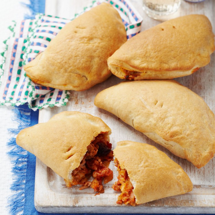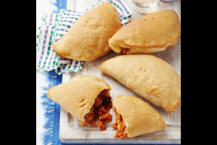 4- يحرّك كل من التونا والزيتون وجبنة “موزاريللا” في خليط البندورة، وينقل بواسطة الملعقة إلى المنتصف اليساري من كلّ دائرة. تبلّل دوائر العجينة بالماء، ثم تقلب من منتصفها الفارغ لتغطّي الحشو. وتوخز وخزتين بواسطة طرف السكين، تدهن بالزيت، ثم تخبز لمدّة 20 دقيقة، حتى تصبح سميكةً من قواعدها.
