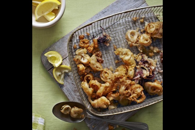 تغطّى شرائح الحبّار بالعجينة، ثم تقلى في الزيت الغزير على دفعات، وذلك حتى تصبح بنيّة ومقرمشة.تصفّى جيّداً على ورق نشاف، وتقدّم مع الصلصة الحارة في طبق التقديم