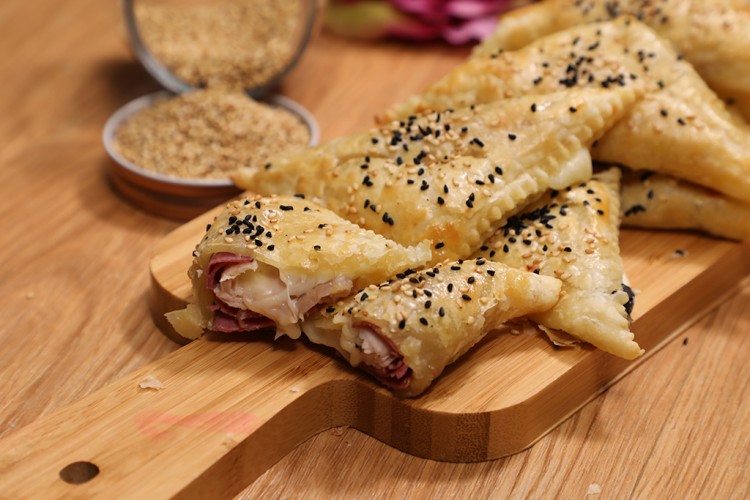 1. احشي عجينة البف باستري بالروست بيف، والتيركي، وجبن الموزاريلا.