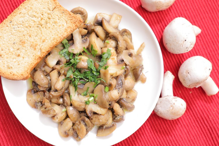 4. ارفعي المقلاة عن النار، وانقلي الفطر لطبق التقديم، ثم صبّي عصير الليمون والبقدونس وقدمي الفطر ساخن إلى جانب الخبز المحمص.