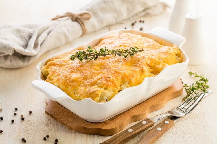- رشي قالب الفرن بالقليل من الزبدة وضعي بها مربعات الفطيرة وأدخليها للفرن المحمى مسبقاً على درجة حرارة 180 لمدة 20 دقيقة، وقدميها ساخنة أو دافئة.