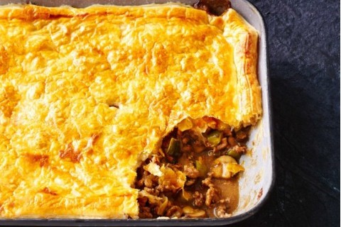 - توضع عجينة الباف باسترى فوق المكونات السابقة وتحكم من جميع الجهات.
