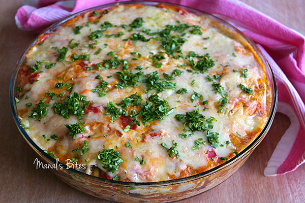 6. تخبز على حرارة 175 من 20-25 دقيقة وتزين بالكزبرة وتقدم دافئة.