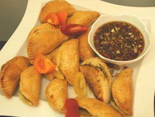 3. احشيه بخليط الخضر من جهة الوسط، ثم ادهني أطراف العجين بالماء البارد، وأقفلي حبات العجين