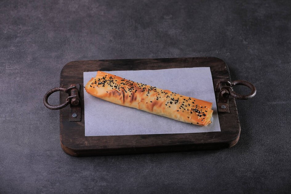 يحشى الجلاش بالسبانخ وتلف العجينة إلى لفافة.