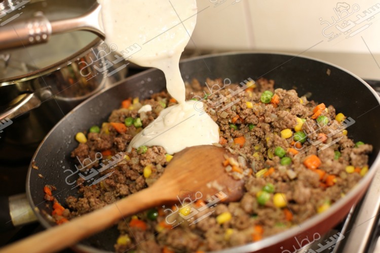 فطيرة اللحم والخضار بالبشاميل خطوة بخطوة بالصور