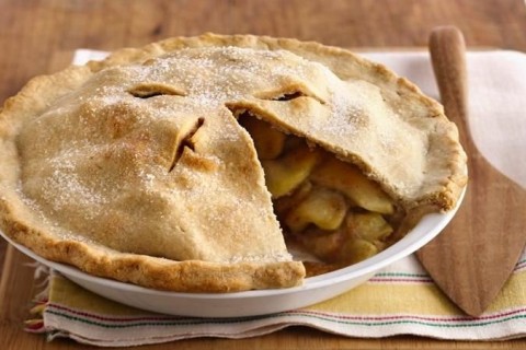 - نفرد العجينة على التفاح ونتخلص من الزوائد على الاطراف بواسطة سكين، ونقوم بعمل فتحات صغيرة في العجين بشوكة او سكين حتى يخرج البخار من العجين.
