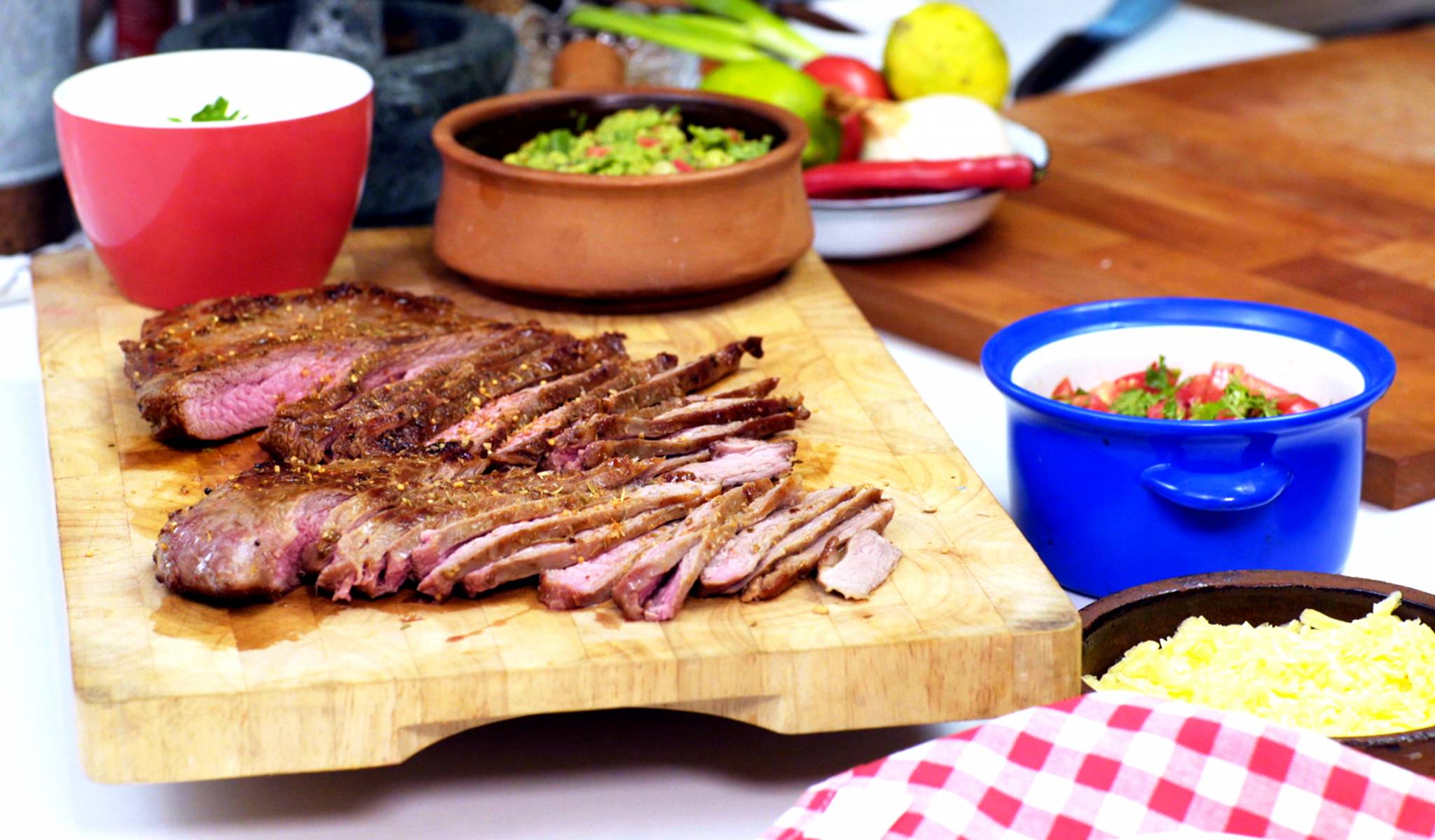 يوضع طبق اللحم الرئيسي إلى جانب طبق الساور كريم، جبن الشيدر، البيكاديجايو، و الجواكامولي، الهاليبينو، و شرائح التورتيلا.
