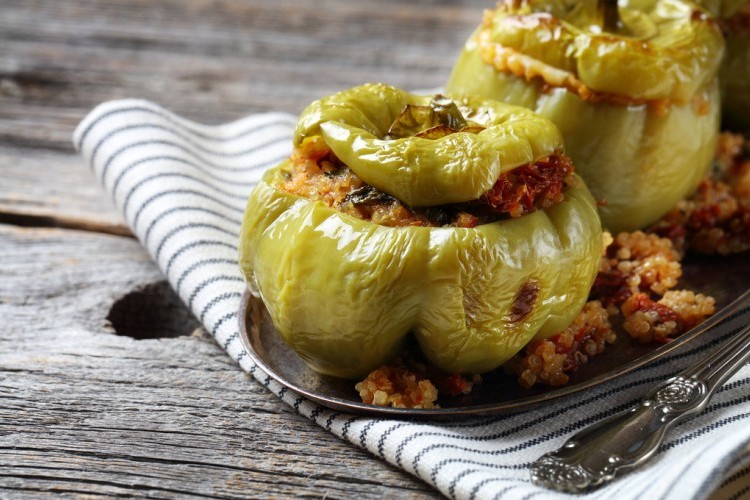 - احشي حبات الفلفل بالمزيج ثم رتبي الحبات في طبق الفرن.