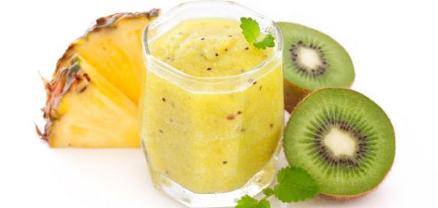 يوضع عصير الأناناس في وعاء الخلاط الكهربائي، ثم تُضاف قطع الكيوي، وتخلط المكونات حتى يصبح المزيج سائلاً وناعماً، ثم يوضع العصير الناتج في كوب، ويضاف إليه عصير الليمون، ويُقدّم.