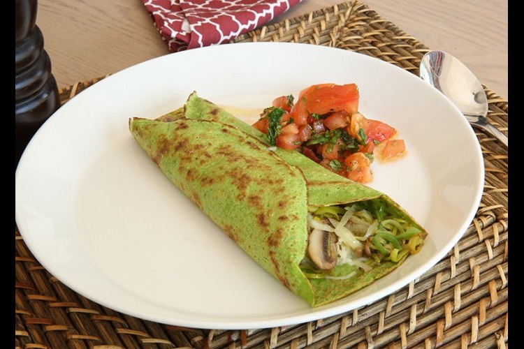 2. ضعي البيض والطحين والحليب والسبانخ المصفى ورشة ملح في محضرة الطعام واخلطي حتى يصبح المزيج هش وناعم.