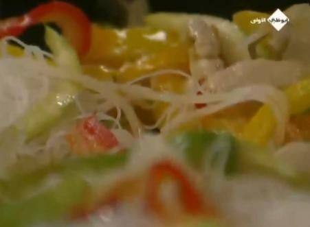 الخليط ثم ضيفي الفلفل الألوان وحركى المكونات ثم ضعي الكوسا وحركي ثم ضعي