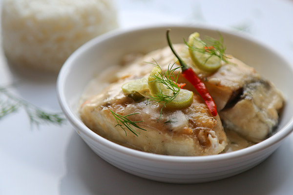 6. يرص السمك في صينية فرن ويُصب فوقه صلصة الكريمة المُعدة ثم يوضع في فرن ساخن على 160 درجة لمدة 10 – 15 دقيقة فقط.