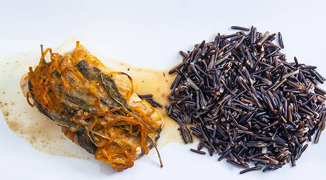 يقدم مع 100 جرام من الأرز البري المطبوخ.