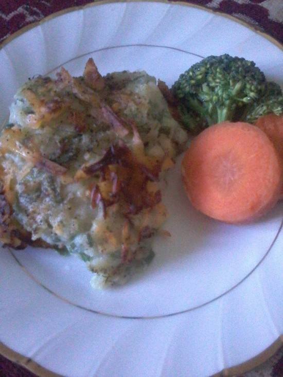 - ثم نضعه في القالب ونضع فوقه باقي الشبت والبقدونس المفروم ثم خليط البطاطس ونساويه جيدا ثم الجبنه وعلي الفرن لمده 30 دقيقه .