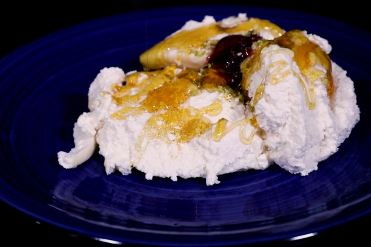 - أزيلي القشطة المستخلصة من أعلى مزيج الحليب، وضعيها في طبق مع مصفاة حتى تتصفى القشطة جيداً، مع الرص الخفيف عليها حتى تتخلصي من الماء.