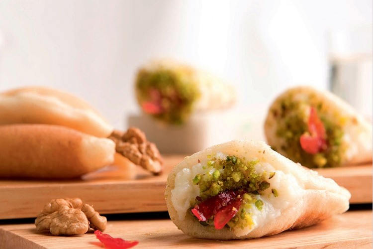 10- تزيّن الجهة الظاهرة من القشدة بالفستق الحلبي ومربّى زهر الليمون.